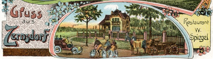 Das Restaurant "Spiegel" in Zernsdorf konnte man nicht unbedingt zu den in vielen Dörfern typischen Landgasthöfen zählen. Als eine von den ehemals zahlreichen Zernsdorfer Gaststätten war sie relativ "jung" und befand sich nicht im Zentrum des Ortes, sondern kurz nach 1900 außerhalb der Siedlungsgrenzen  - auf der Hälfte des Weges zwischen der Schleuse Neue Mühle und dem Ort Zernsdorf. Als Ausflugsgaststätte wird sie das Ziel vieler Wanderer, Radsportler und Motorisierter gewesen sein.