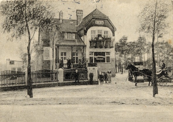 Der Ausschnitt einer Ansichtskarte von 1911 zeigt, dass straßenseitig über dem dreiteiligen Gaststubenfenster ein großer Balkon war. Das genaue Datum der Eröffnung der Gaststätte ließ sich bis jetzt noch nicht ermitteln, dürfte zu Beginn des Jahres 1909 liegen.