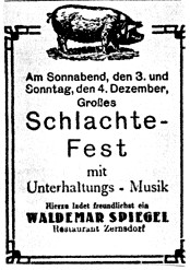 In dem Vermieterverzeichnis des Verkehrsvereins Zernsdorf von 1938 ist das Restaurant "Spiegel" auch genannt: Zwei Doppelbettzimmer konnte man für 3 RM pro Tag, wohl besser pro Nacht, oder für 10 RM pro Woche bei Vollpension mieten.